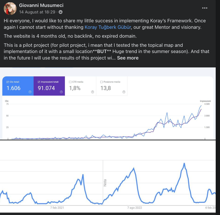 Soon, a new interview will be published on the Koray Tugberk GUBUR’s official YouTube channel. You will see what the Topical Authority Course and Scientific SEO Mindset can achieve.